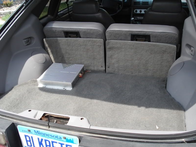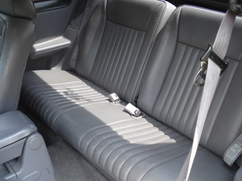 Grey leather, cd player, subs installed in the spare tire area, cold ac, white face gauges, power everything.