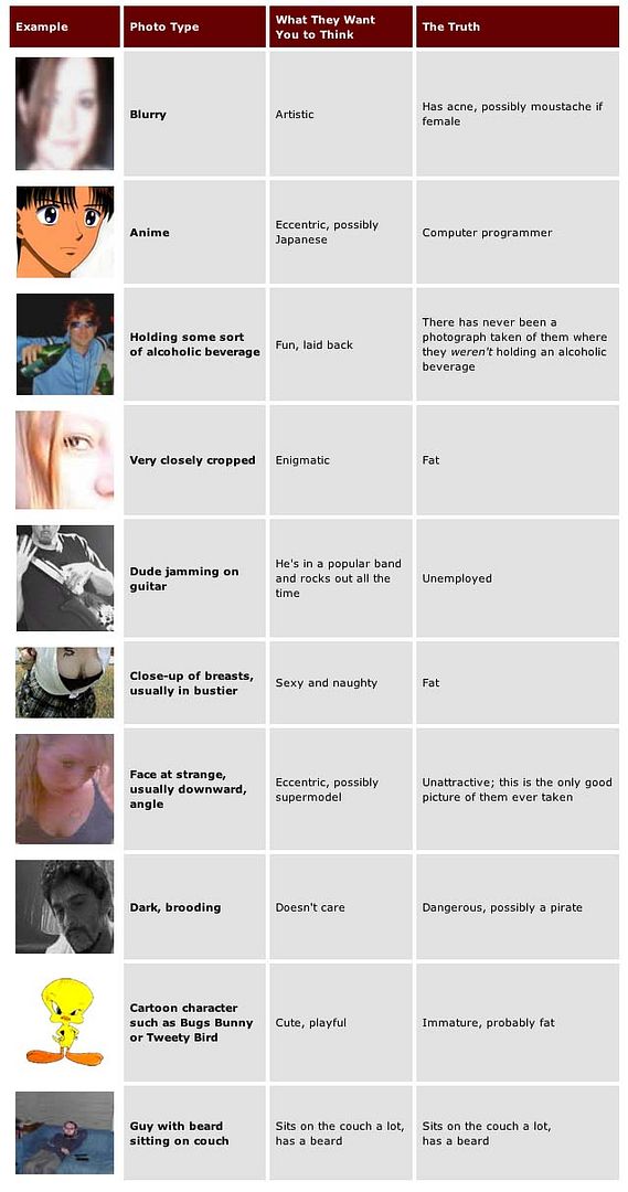 I'm not on Myspace, but I am on Tribe, which is about the same thing. That chart is pretty accurate.