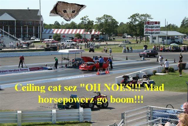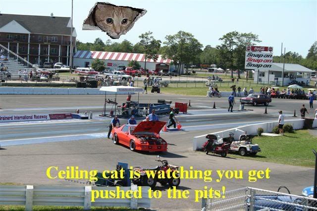 Ceiling cat pics of Les's dragster - new Friday pics and video! Cameros suck.