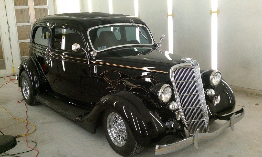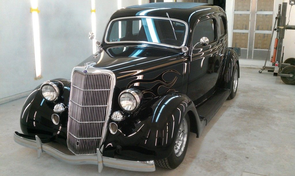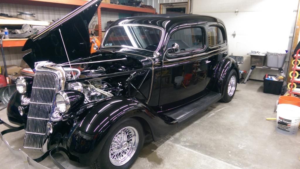 He loves the look when it is freshly detailed and all that polished aluminum needs some upkeep. The '35 Ford is a customers car he built 16 years ago and the '57 Chevy was a fresh restoration that I cleaned up before it went to the get the interior done. Chopper keeps me pretty busy and refers a lot of work to me.